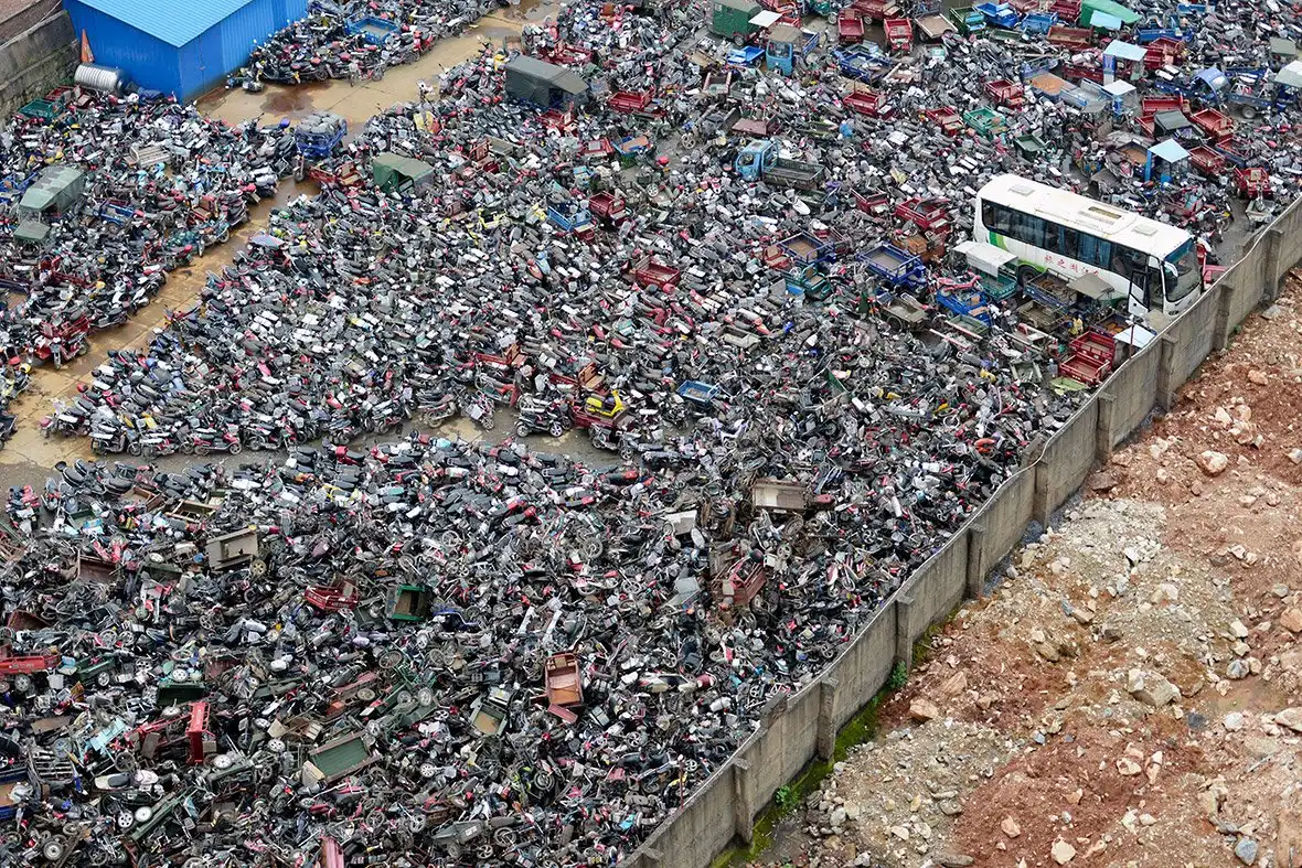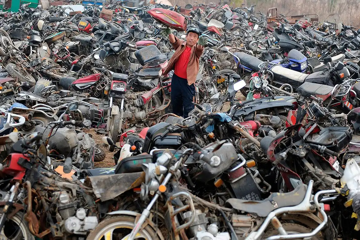 Почему тогда такие свалки существуют ? Государство стимулирует разными способами владельцев авто менять их на более новые и соответственно экологически чистые. Один из мощных загрязнителей в самой густонаселенной стране мира — машины. По всему Китаю разбросаны автосвалки, где похоронены автомобили, грузовики и мотоциклы, не отвечающие национальным стандартам выбросов.