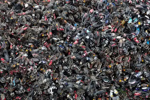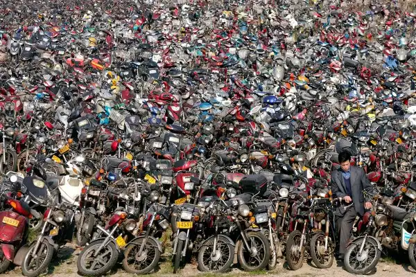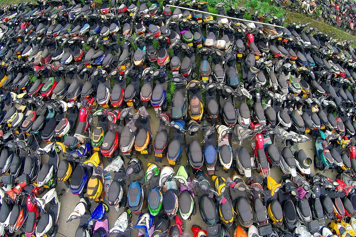 Горы мотороллеров и мотоциклов. (Фото ChinaFotoPress