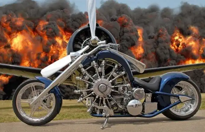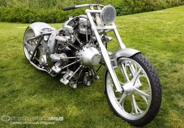 Как известно, в 20-30 годах прошлого века авиалюбители строили миниатюрные самолеты с маломощными мотоциклетными моторами, так называемые авиетки. Но времена меняются, а вместе с ними меняется мода. И сейчас, наоборот, начинают строить мотоциклы со звездообразными авиационными двигателями мощностью более 150 лошадиных сил, развивающие скорость свыше 200 км/ч. Однако еще не решен принципиальный и судьбоносный вопрос: как ставить такой двигатель — вдоль или поперек?