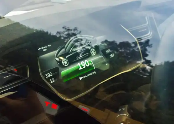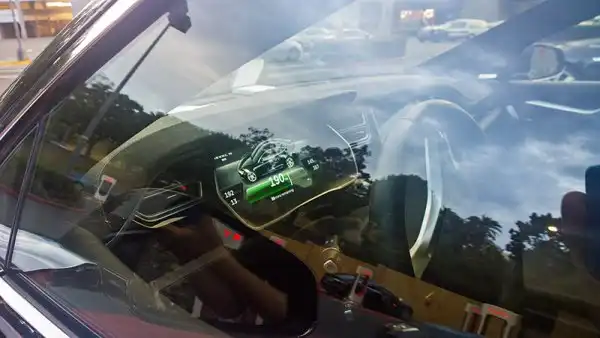По его словам 100% заряда можно получить менее чем за полтора часа, тогда как его домашнее зарядное устройство позволяет зарядить машину полностью за 8 часов, то есть за ночь. Отметим, что приобрести SUPERCHARGER домой нельзя. Для дома предназначены только стандартные портативные зарядки. Ниже на приборной панели видно, что на текущем заряде машина уже может проехать около 190 миль (300км), а до конца процесса осталось еще 50 минут.
