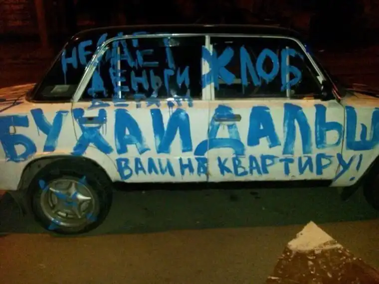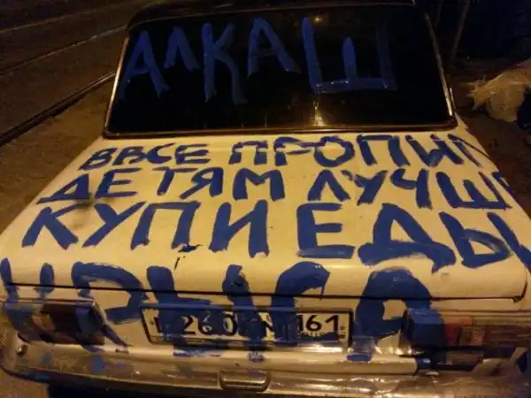 В воскресенье, 19 июля, около 04:30 утра в Сети красовались фото изуродованной машины, которая находится на улице Обороны в Ростове. На борту ВАЗа появились несколько нелестных слов, написанных масляной краской, видимо, о владельце легковушки. Женщина разрисовала машину бывшему мужу за то, что не платит алименты. Фото машины уже облетело весь Интернет Автор надписей призывал «детям лучше купи еду» и «о детях подумай».