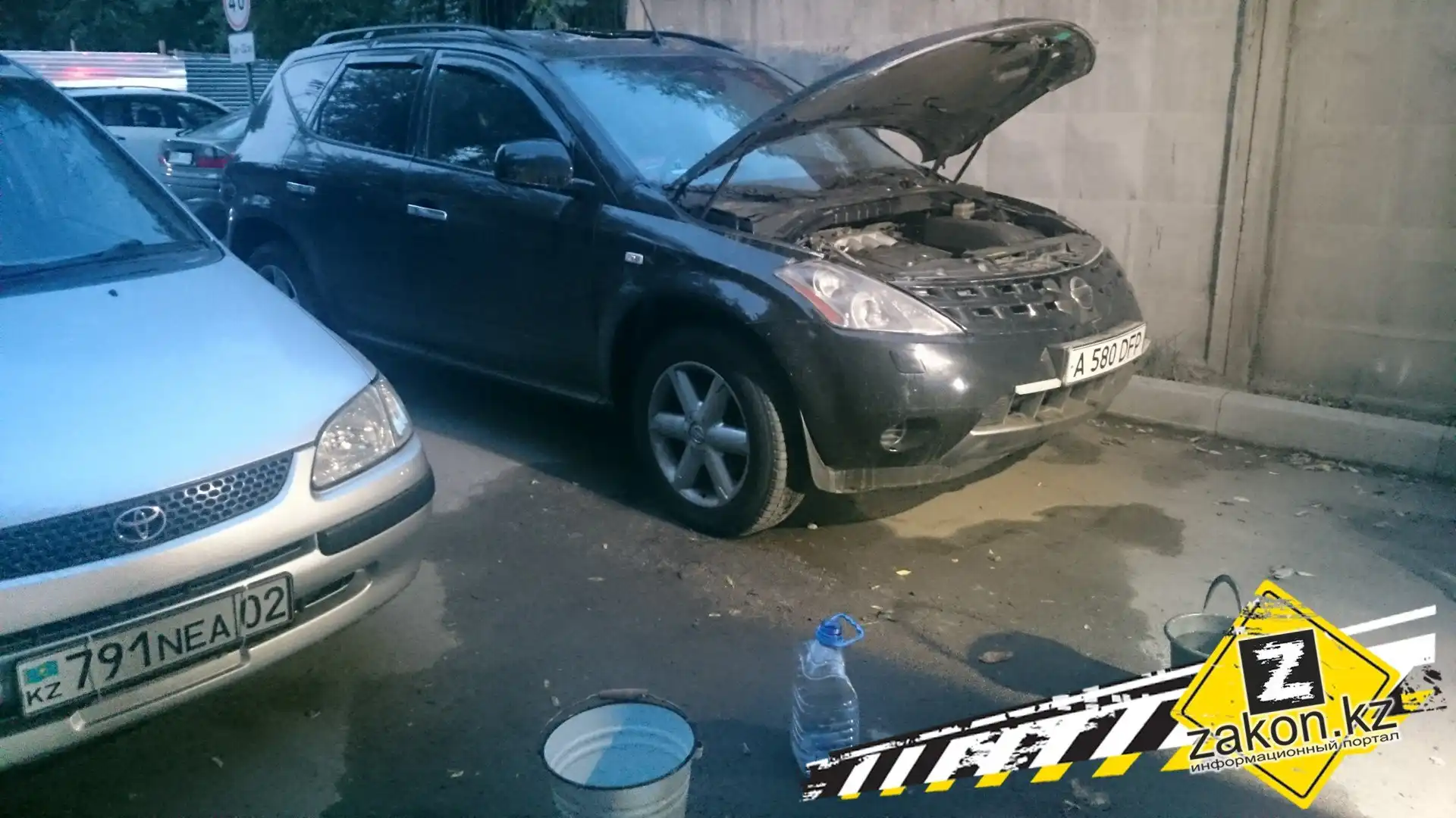 Следующим стал Nissan Murano, стоящий у дома №41а. Отец владелицы внедорожника увидел в окно разгорающийся автомобиль, и схватив ведра с водой, бросился тушить машину.
