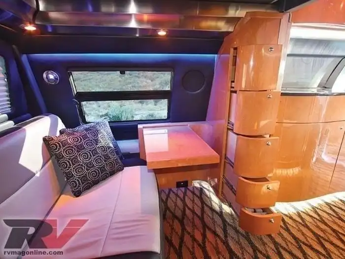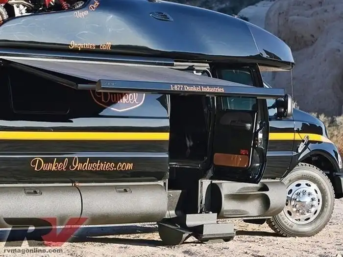 Перед вами дом на колесах Ford F-750 Dunkel Luxury Hauler 4х4, построенный на базе самого большого в мире серийного автомобиля Ford F-650. Автомобиль длиной 9,7 метра, шириной 2,5 метра и высотой 3,6 метра оснащен 7,2-литровым двигателем Caterpillar, позволяющим ему перевозить не только все внутреннее убранство дома, но еще и два квадроцикла на крыше, среднеразмерное авто в кузове и буксировать немаленький прицеп или яхту. Полноприводный рамный дом на колесах оборудован пневмоподвеской, а внутри у него есть кухня с газовой плитой и холодильником, туалет и душ, несколько зон для отдыха и большие кровати.