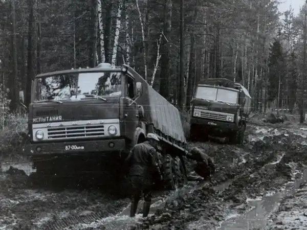 КАМАЗ-43102 на испытаниях. Колея глубиной 900 мм. 1978 г.