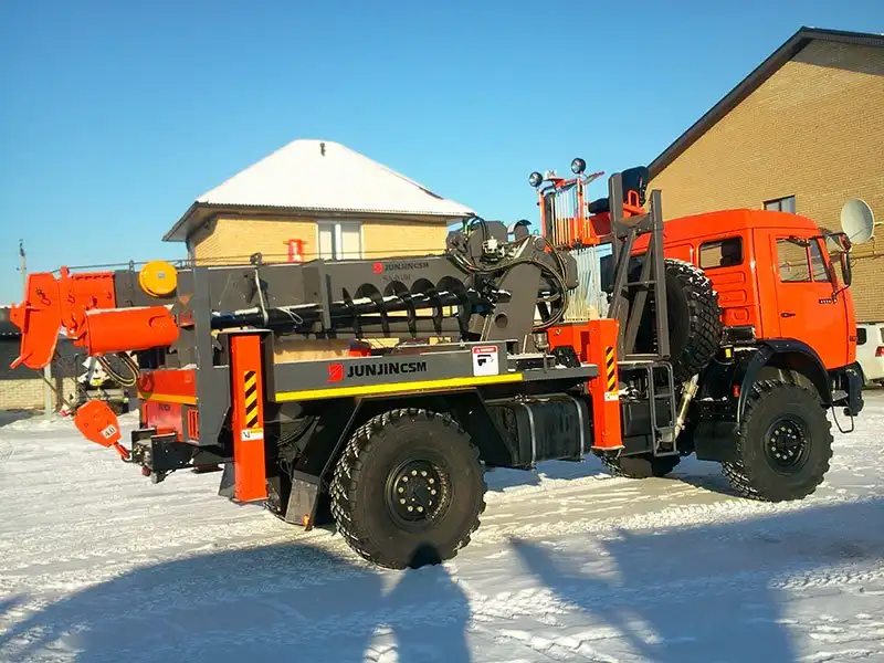 БКМ KDC 2056 управляется с помощью дистанционного пульта управления. Технические характеристики практически ничем не отличаются от моделей-собратьев. Единственное различие заключается в глубине и диаметре бурения. А по функциональности и надежности данная БКМ не уступает другим ямобурам компании «Kanglim». Также KDC 2056 оснащены не только ямобуры камаз, но и крано-манипуляторы. Оба механизма располагаются на стреле телескопического типа. На первых выдвижных секциях находится механизм для бурения, а кран-манипулятор находится выше.