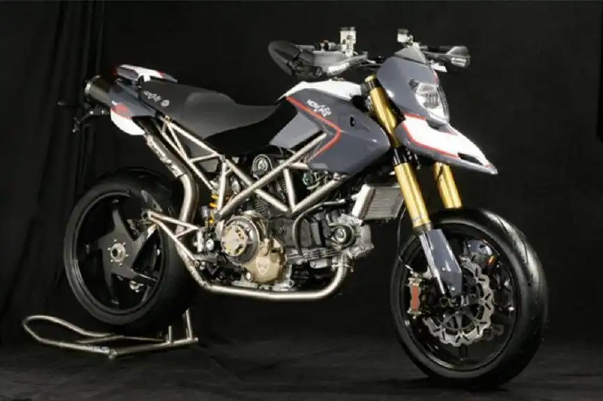 Мотоцикл имеет свежий и агрессивный дизайн, которому он обязан известному итальянскому дизайнеру Aldo Drudi. Двигатель у байка от Ducati 185 л.с., а вес всего 135 кг. Электронную ступенчатую трансмиссию можно запрограммировать по своему желанию. Низкий вес мотоцикла стал возможен благодаря использованию титановых сплавов, вес рамы мотоцикла - всего 4 кг.