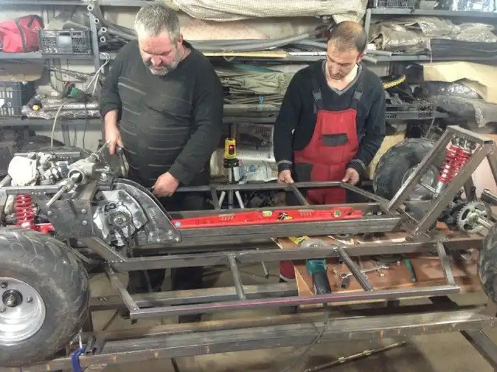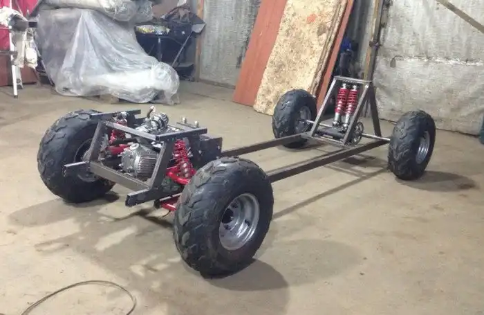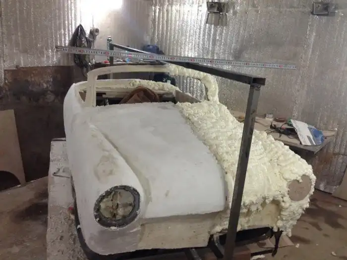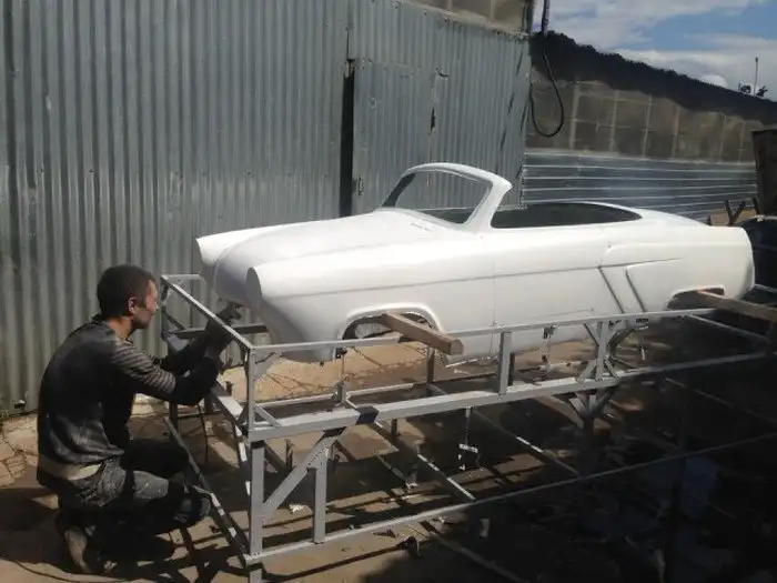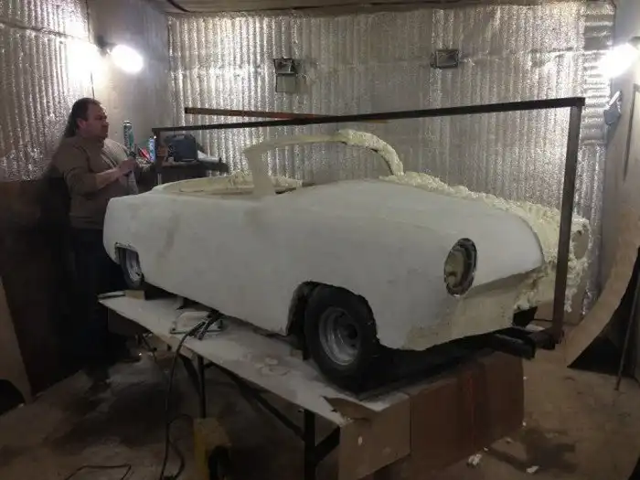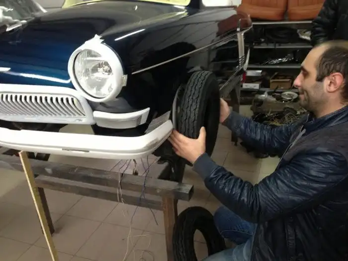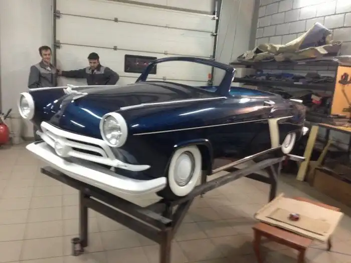 Вот такой вот оригинальный родстер ГАЗ-21 в масштабе 1:2 построили московские энтузиасты. За основу был взят детский квадроцикл с коробкой-вариатором, а далее все строилось собственными силами. На пространственную раму установили пластиковый кузов с множеством уменьшенных копий оригинальных деталей, в моторный отсек поместили 6-сильный бензиновый двигатель объемом 500 кубических сантиметров, а салон обшили белой кожей. Фотоотчет о строительстве данного авто ждут вас далее.