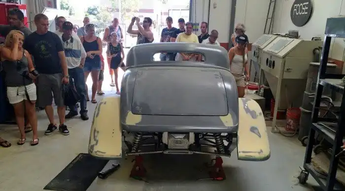 Последняя часть экскурсии – сборочный цех, где мастера собирают автомобили и наводят последние штрихи. Как вы могли видеть в шоу, Чип может передумать и внести изменение в дизайн в самый последний момент, здесь это происходит не реже. Все машины, которые находились в сборочном цеху, принадлежат Фузу, одна из них – машина мечты отца Чипа, который живет в Санта-Барбаре. У каждого должна быть машина мечты, и Фуз-старший, судя по всему, скоро ее получит.