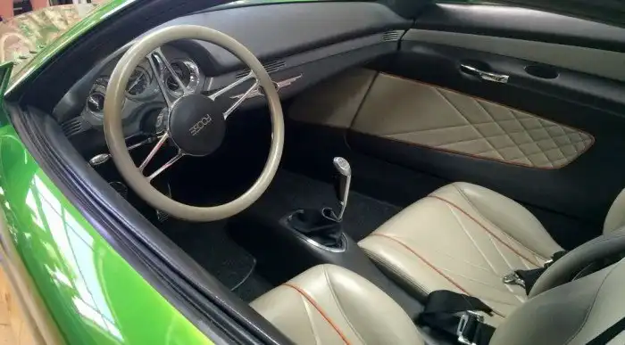 Судя по тому, что мы видели, ему это удалось: более стремительные формы кузова классического хот-рода с открытыми колесами делают дизайн автомобиля приближенным к суперкарам, так же как и центральное расположение мотора (а выбор, естественно, пал на V-образную «восьмерку», работающую в паре с механической коробкой передач, передающей мощность в 560 л.с. на задние колеса). Hemisfear, кстати, это игра слов – Hemi`s fear, или «страх Хэми» – это отсылка к узнаваемому бренду, используемому корпорацией Chrysler для двигателей V8. Мир оказался не готов к среднемоторному хот-роду, но ранние эскизы этой модели легли в основу первого серийного хот-рода Plymouth Prowler .