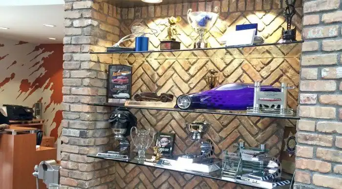 Экскурсия продолжается в покрасочной мастерской, где машины готовятся обрести новый облик. Немногие знают, что любимый цвет Фуза – оранжевый. Этот цвет присутствует во всех автомобилях, созданных по его дизайну, – будь то целый элемент или маленькая полоска вокруг эмблемы. В покрасочном цеху было много машин, команда готовилась к ежегодному шоу SEMA – главному автомобильному событию США.