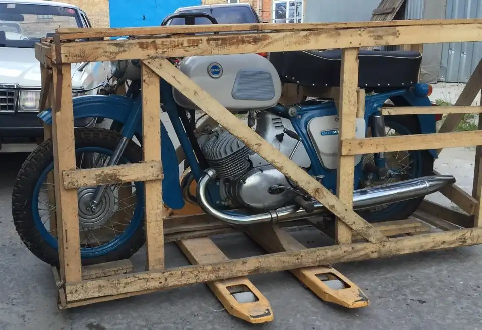 Автомобильные "капсулы времени" всегда имеют, пусть небольшой, но все же какой-то пробег, ведь, как минимум, машина должна была доехать от автомагазина до гаража — а это уже несколько десятков километров. Другое дело — мотоциклы: в силу более компактных размеров, в советские годы (да и сейчас) их транспортировали и продавали в заводской упаковке, которая представляла собой деревянный ящик.