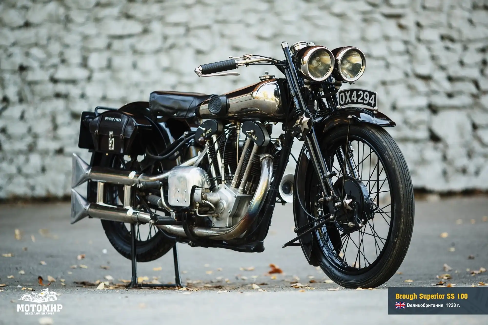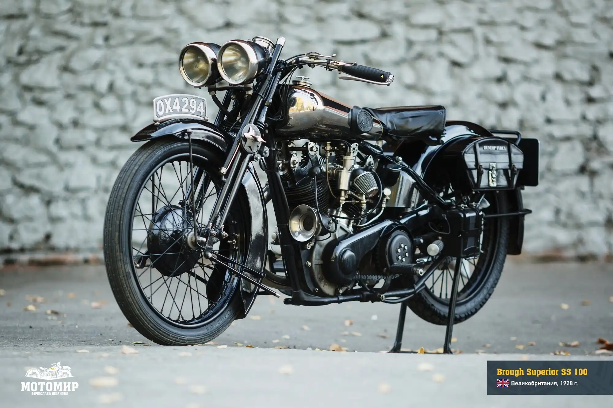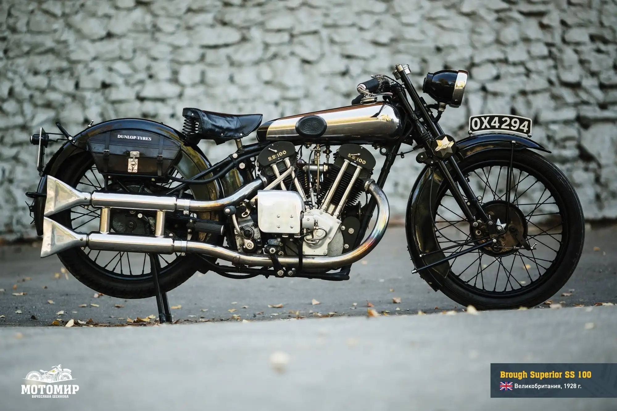 Самая знаменитая модель в истории компании Brough Superior – «SS 100» (Super Sports) дебютировала в ноябре 1924 года. Цифры в ее наименовании означали, что она способна была развивать скорость не менее 100 миль в час (160,9 км/ч) – каждый мотоцикл снабжался специальным сертификатом, удостоверявшим, что эта скорость была достигнута во время испытаний.