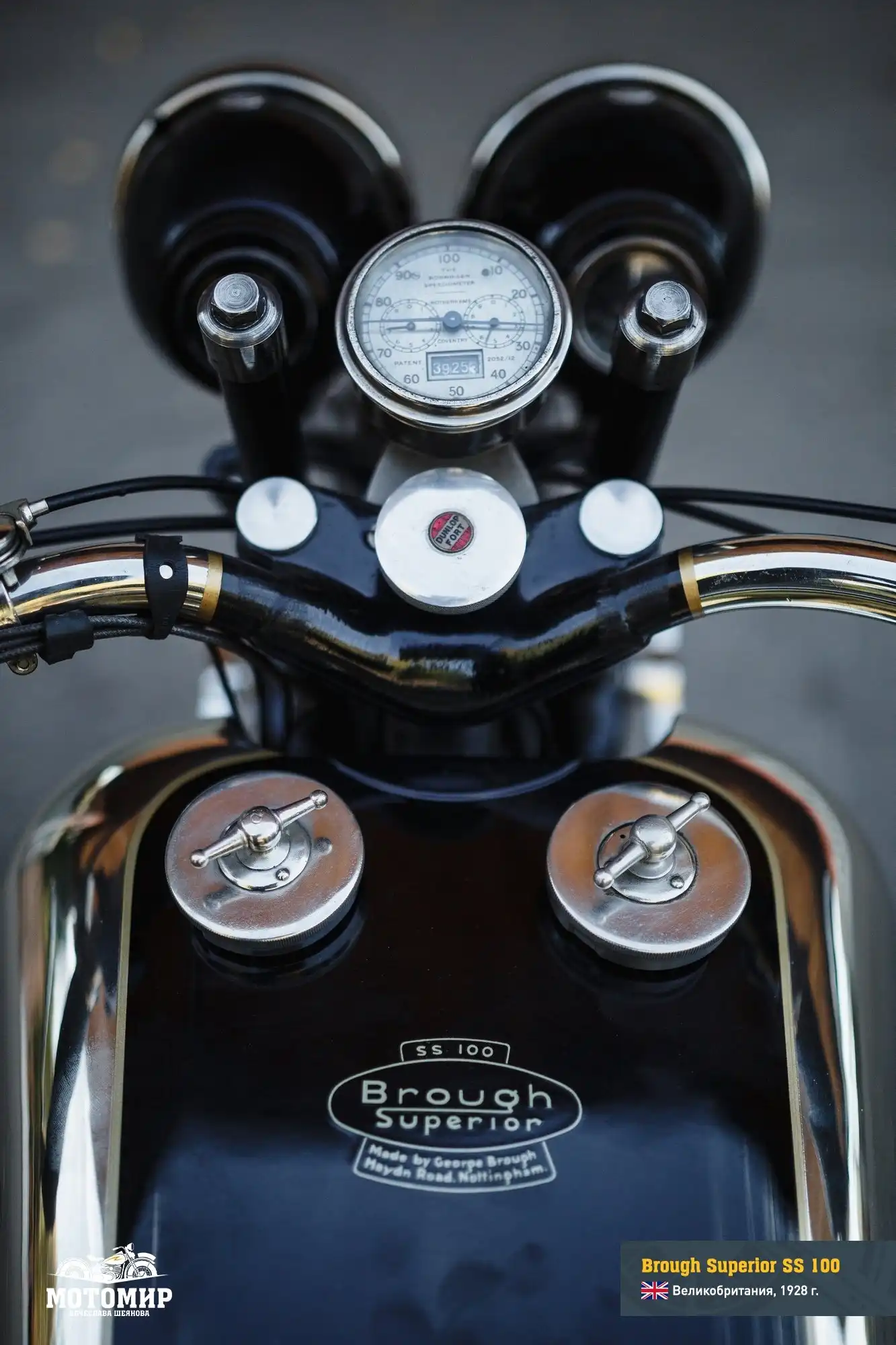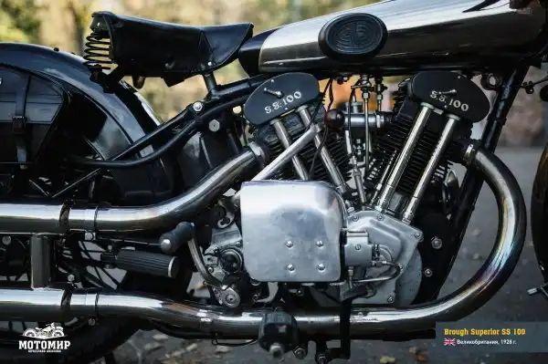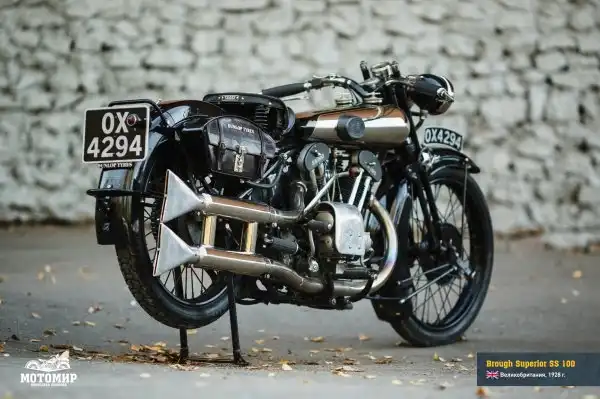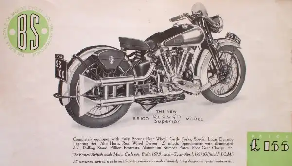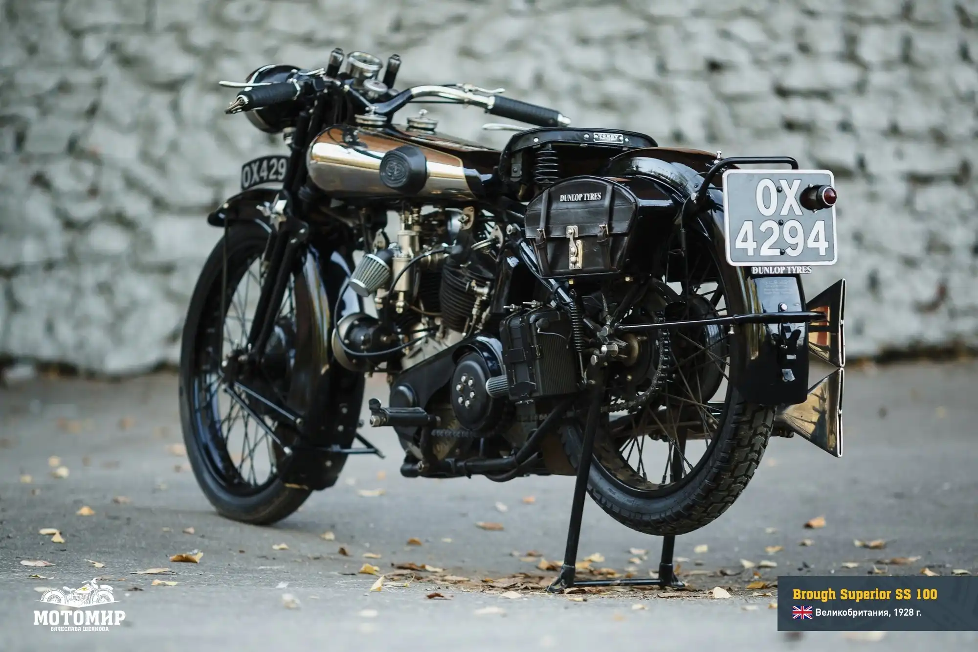 Самая знаменитая модель в истории компании Brough Superior – «SS 100» (Super Sports) дебютировала в ноябре 1924 года. Цифры в ее наименовании означали, что она способна была развивать скорость не менее 100 миль в час (160,9 км/ч) – каждый мотоцикл снабжался специальным сертификатом, удостоверявшим, что эта скорость была достигнута во время испытаний.