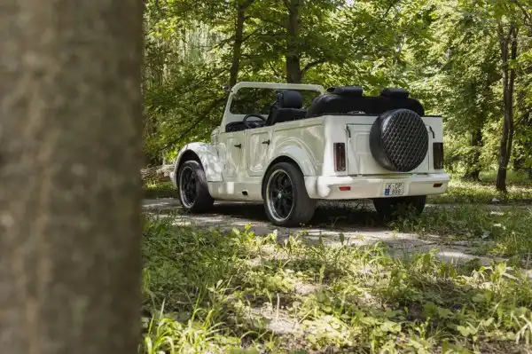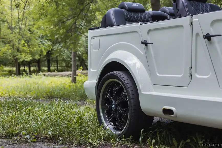 Вы только посмотрите на него! Это не какой-то очередной ГАЗ-69, который вы можете увидеть на ретро-парадах каждого города России. Это нечто намного более интересное, ведь под капотом тут - двигатель BMW! Но сначала ты этого не понимаешь, а видишь белоснежный кабриолет необычной формы, с кастомными бамперами и юбками, огромными литыми дисками и шикарным салоном. Я думаю, не стоит говорить о том, что только слепой не свернет голову при приближении такого автомобиля.