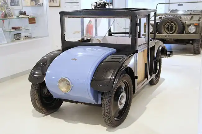 Передняя подвеска – состояла из двух поперечных листовых рессор, а задняя – независимая, была выполнена на продольных рычагах и без амортизаторов. Маленькая колея позволила отказаться от дифференциала. Компактная двухместная машина весом всего 370 кг могла разгоняться до 60-64 км/ч, а расход топлива составлял 4-5 л/100 км пути.