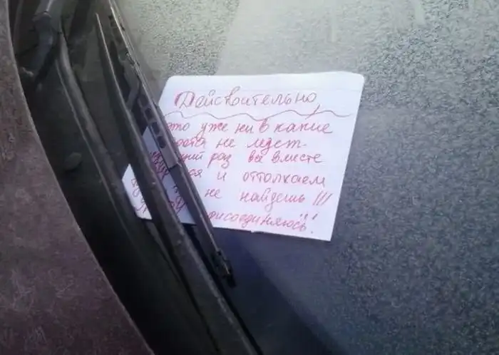 Припарковав свой автомобиль так, что он мешал другим машинам, владелец обнаружил на ней весьма содержательные послания.