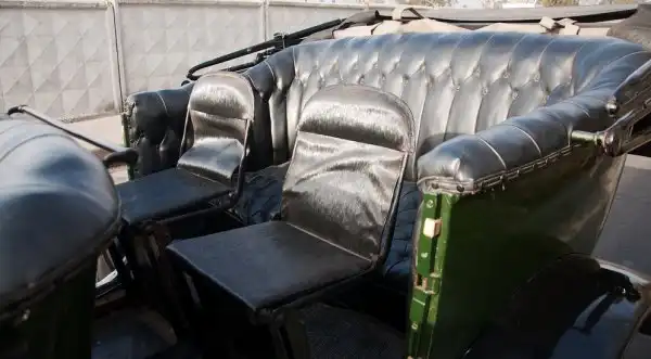 Машина имеет приличные габариты. Кажется, в салоне будет очень просторно. А вот и нет. Задние места действительно хороши: тут и втроём будет вполне просторно и удобно. Хочется покататься большой компанией с дамами и шампанским? Пожалуйста: есть два дополнительных откидных сиденья. Даму туда сажать не стоит, а какого-нибудь лакея – запросто. Но остальные сиденья просто великолепные: мягкие, кожаные. Шик, блеск, красота. Но мы с вами – водители, поэтому полезем на рабочее место шофёра начала прошлого века.
