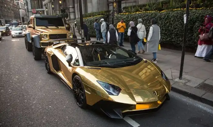 Неизвестный миллиардер из Саудовской Аравии прибыл в минувшие выходные в Лондон с личным парком роскошных автомобилей. Вместе с владельцем в столицу Великобритании, куда состоятельные жители стран Ближнего Востока отправляются в особенно жаркие периоды у себя на родине, привезли внедорожник Mercedes G63, представительский седан Bentley, купе Rolls-Royce и суперкар Lamborghini Aventador SV. Все автомобили выполнены в золотом цвете, и их суммарная стоимость превышает 1,4 миллиона долларов. Автомобили были замечены в центральном районе Кенсингтон, а позже их припарковали у одного пятизвездочного отеля. Все они украсят собой событие местного значения - открытие городского сезона суперкаров.