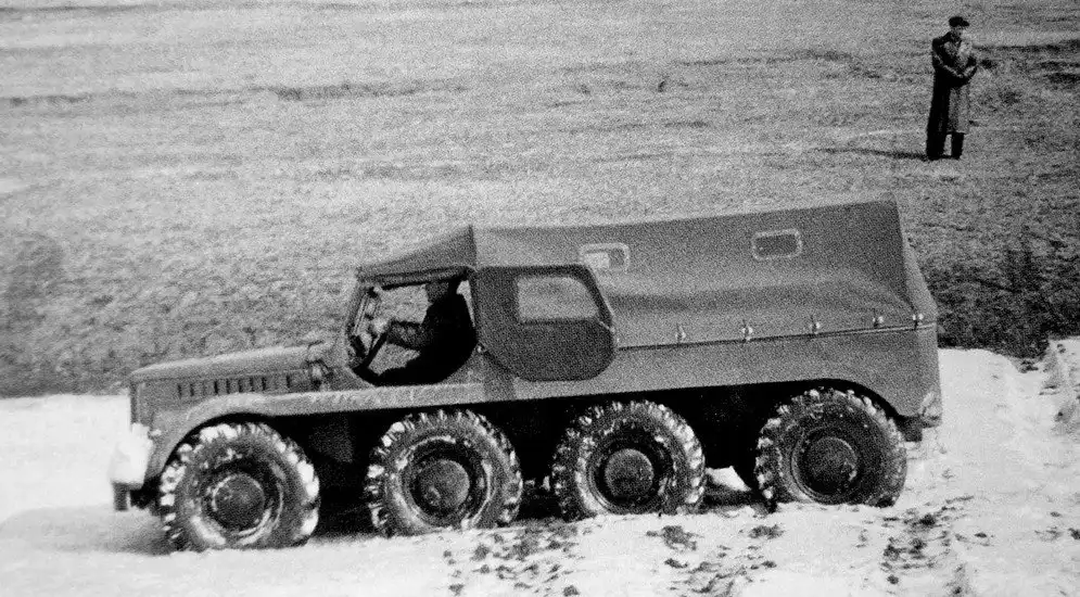 Вскоре после войны в тиши секретных специальных конструкторских бюро (СКБ) началась активная работа по новым видам будущей автотехники для Советской армии. Результатом их деятельности стал огромный парк уникальных строго засекреченных вездеходных машин и целых семейств экспериментальных армейских грузовиков и тягачей, созданных на базе обычных серийных машин классической конструкции. Самыми активными разработчиками и изготовителями образцов новой техники стали Горьковский, Уральский и Кременчугский автозаводы. Все испытания секретных автомобилей проводил 21-й научный институт Министерства обороны СССР (21 НИИИ) из подмосковного города Бронницы.
