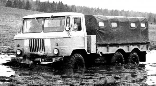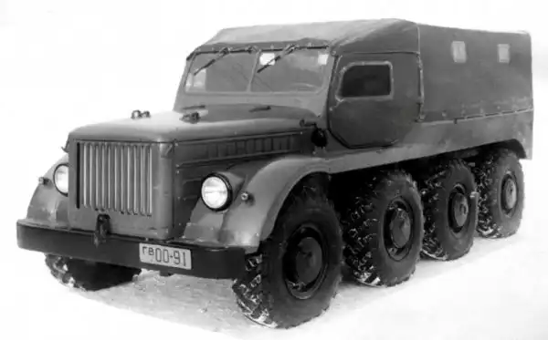 Круговорот поиска новых эффективных вездеходных движителей не обошел стороной и известный армейский двухтонный грузовик ГАЗ-66. Экспериментальные секретные работы ОКБ ГАЗ начала 1960-х годов проводились в основном на базе его различных исполнений и сводились к установке их на разные виды ведущих систем.