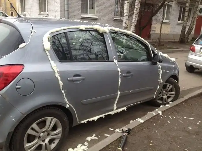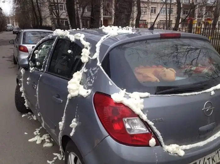 Судя по всему, перед нами еще один изощренный способ автомобильной мести. То ли причина кроется в неправильной парковке, то ли в чем-нибудь другом, нам остается лишь гадать.