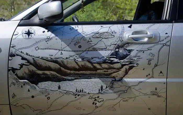Перед вами последствия одного ДТП, оставшиеся на двери автомобиля, хозяин которого сделал эти фото. Виновник аварии купил новую дверь, однако возможности установить ее сразу не было, поэтому решено было временно скрыть все это уродство. Как удалось это сделать, смотрите далее.