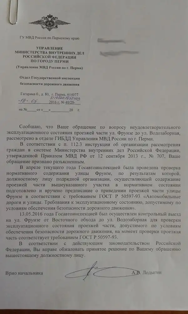Ответ ГИБДД.