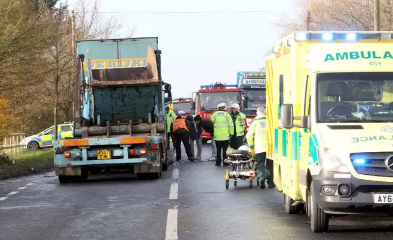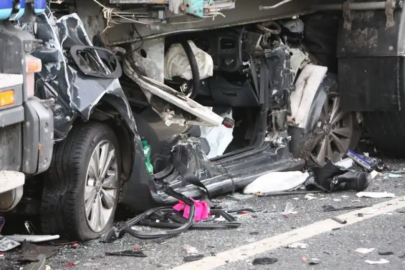 39 летняя учительница Кэти Холт утром опаздывала на работу и дабы успеть ,решила поддать газку в разрешенном месте. Но дама видимо забыла , про сидящую глубоко в душе обезьяну с гранатой , не справилась с управлением и залетела под многотонный грузовик на своем маленьком Гольфе.