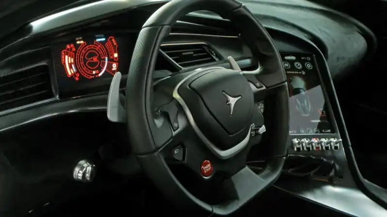 Мотор устанавливается в передней части салона позади передней оси и развивает 670 лошадиных сил. За доплату компания готова повысить производительность двигателя до 1000 лошадиных сил. В ходе тестирования 670-сильная машина справлялась с набором первых 96 километров в час за 2,8 секунды и разгонялась до 354 километров в час.