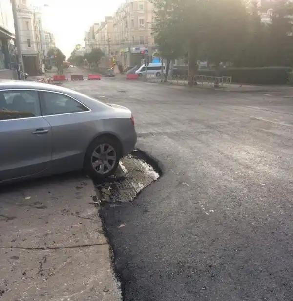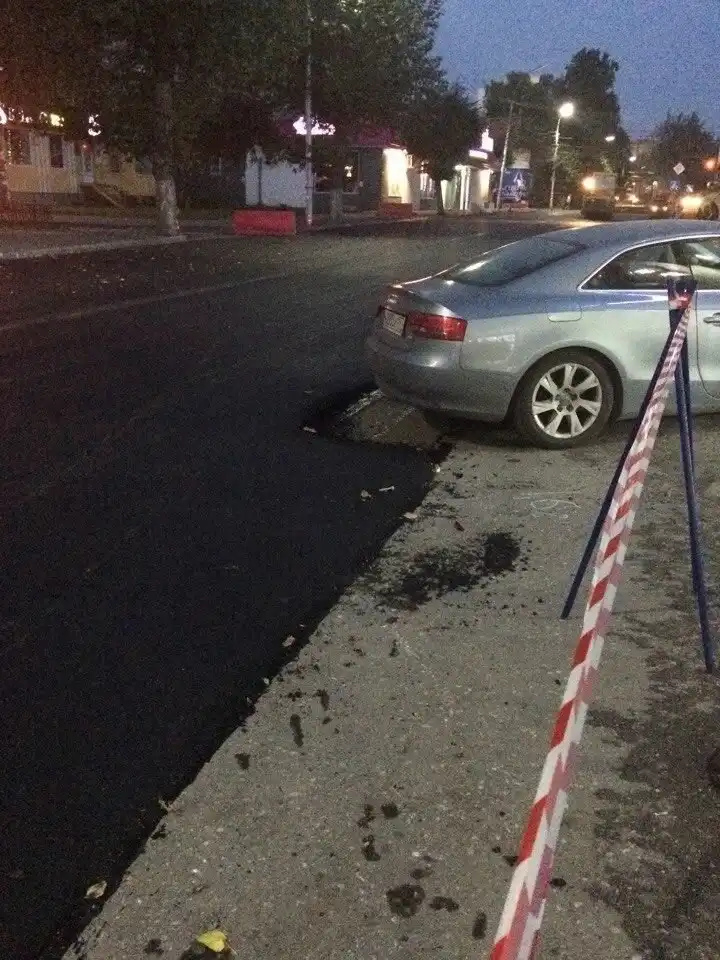 В Рязани ремонтники положили асфальт вокруг припаркованной машины