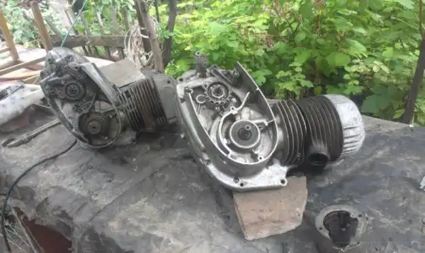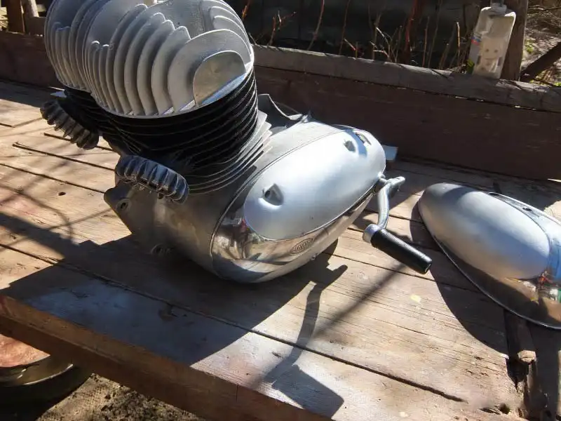 И вот он настал, я приехал к Гене и мы начали, на всё про всё мы потратили около трёх часов, попутно я узнал много секретов и тонкостей сборки конкретно этого двигателя, и торжественно поклялся никому их не раскрывать.(Один я вам раскрою — поршневой палец тютелька в тютельку пролазит в отверстие предназначенное для червячного механизма передающего вращение вторичной оси коробки передач на трос спидометра). Собрали мы двигатель, я был счастлив, оставалось отполировать крышки и можно было использовать. Я забрал двигатель, пока он стоял у меня в мастерской я полировал крышки. Позже началась сборка рамы, и женитьба двигателя с рамой.