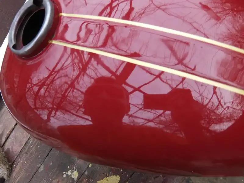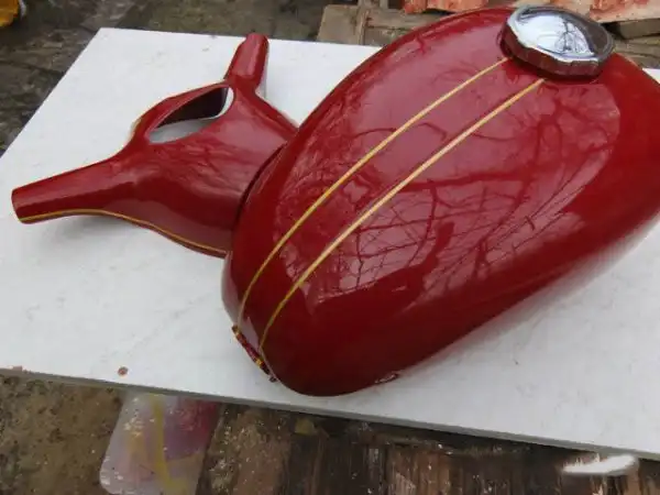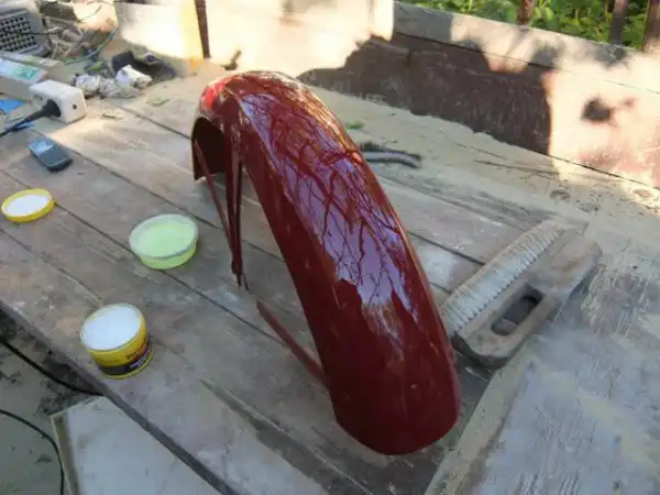 С цировками отдельная песня. На заводе Явы над цировками работали только женщины, они приходили на завод, им выдавали кисти и стакан воды, первые полчаса они рисовали их водой, чтобы разработать кисть руки и почувствовать окрашиваемую деталь, после этого им давали краску и они начинали рисовать… художник из меня никакой, но всё же было огромное желание нарисовать цировки от руки, в интернете нашел специальные кисти, предназначены они для пинстрайпинга но заказать их побоялся. В итого купил специальной ленты толщиной 3 и 10 мм, и «нарисовал» цировки пультом. Для полировки была приобретена болгарка с регулируемыми оборотами от 1000 до 6000, самый мягкий круг, паста 3М и 2000,2500 наждачная бумага (на мокрую). В этом деле главное не переусердствовать и не сточить краску до грунта, благо со мной этого не случилось, все элементы были успешно отполированы. Так им образом я набил скил по покраске и полировке, приобрёл все необходимое для этого оборудование, и при этом сэкономил по сравнению с ценой запрашиваемой покрасочными конторами.