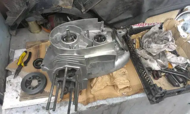 Дело было зимой, познакомили меня с одним интересным человеком зовут его Гена, занимается он поиском и перепродажей запчастей мотоциклов Ява, к нему в гости сидим разговариваем о мотоциклах, рыбалке… в общем зимой я ему позвонил со словами «… нужно откапиталить двигатель Явы Старушки», на что он мне ответил «… не проблема, привози, займёмся». Привёз двигатель обсудили цену, попутно напросился к нему наблюдать за всем этим и помогать. Наступили теплые деньки и мы раскололи мой двигатель, потом я привёз ещё один, его мы тоже подвергли той же операции.