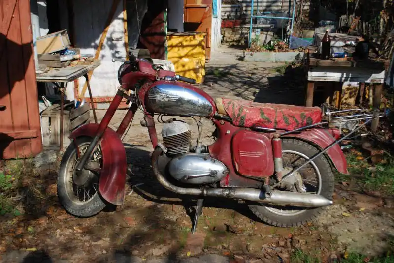 В это время шли поиски донора с документами, главным критерием было наличие ПТС нового образца и живого хозяина. На дворе стояла осень, я безмятежно катался на мотоцикле по роще, и окрестностям, мониторил сайты, и в итоге наткнулся на объявление о продаже мотоцикла отвечающего всем моим критериям. Позвонил, поговорил с хозяином, выяснилось, что он либо продаёт этот мотоцикл за 13 рублей, либо меняет его на ИЖ Планету 5 – на ходу, с документами. В этот момент я вспомнил, что у моего знакомого, уже десять лет стоит такой ИЖ в гараже, созвонился, приехал, посмотрел, отдал 10ку, оформил документы, увёз.