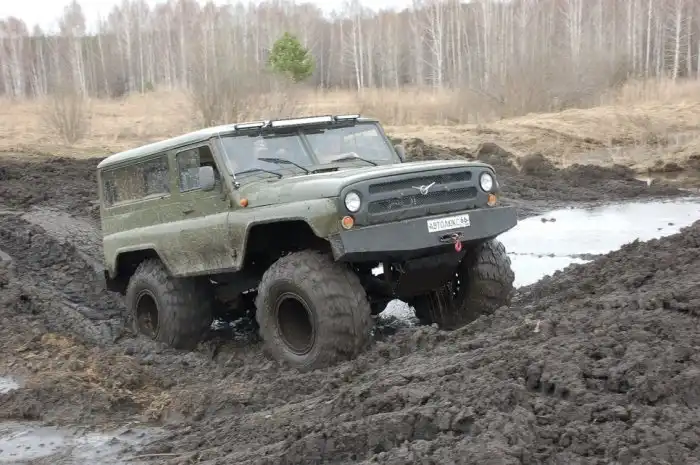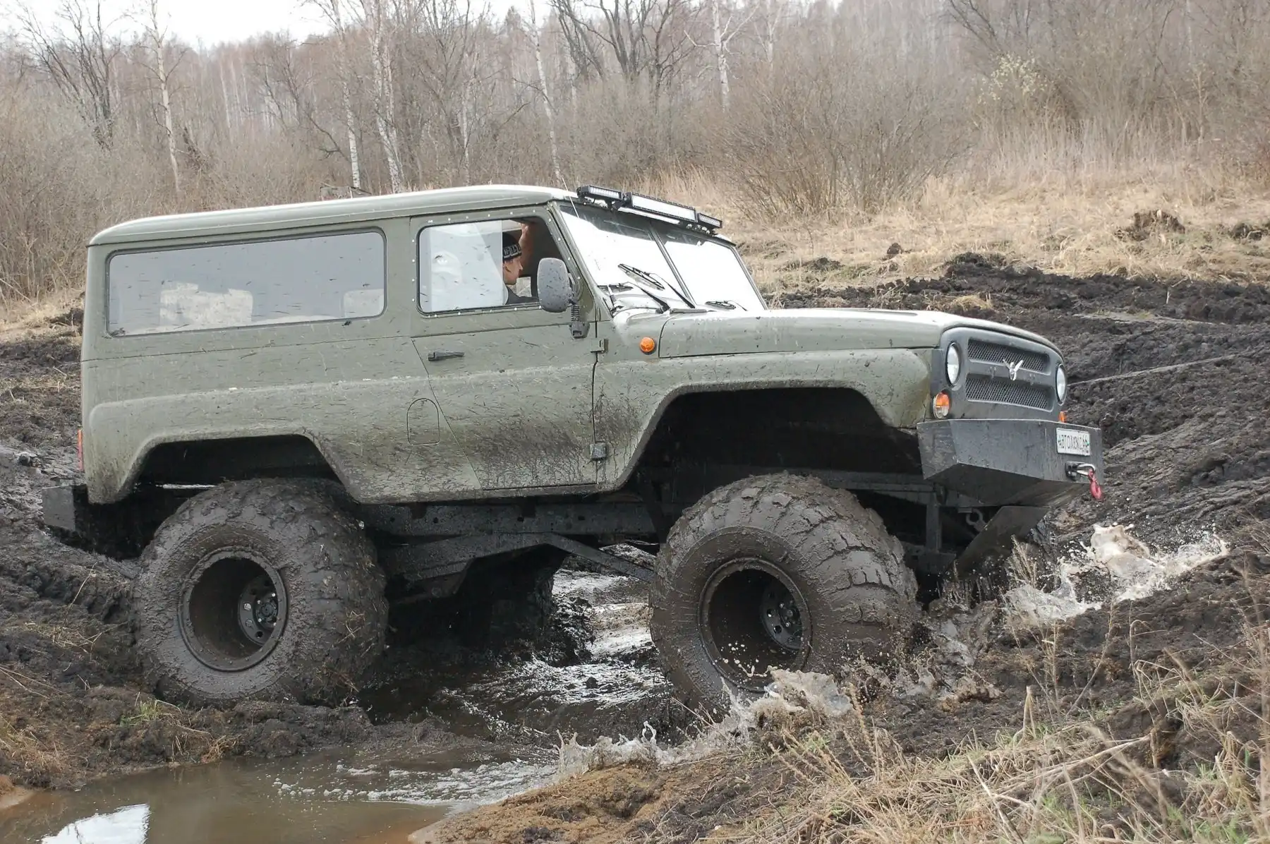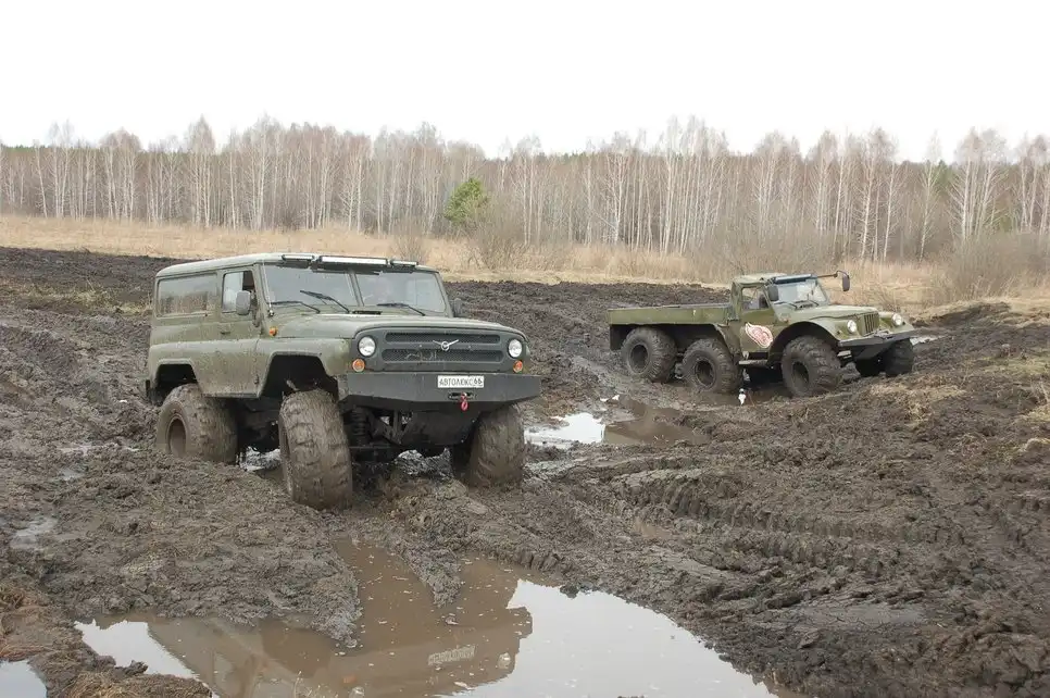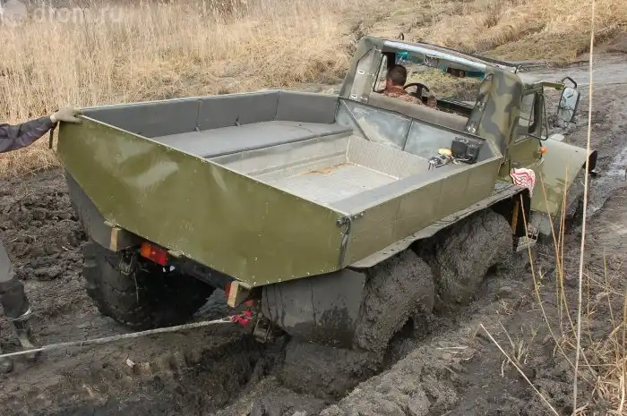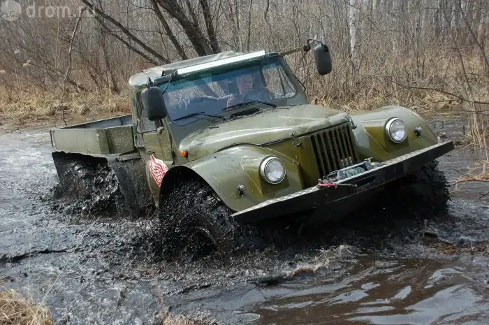Размер колес и давление в них позволяют не думать над тем, какова глубина грязи, которую намесили танки — все равно идет по верхам. «Низовой» дизель при желании позволяет разогнаться и форсировать препятствие ходом
