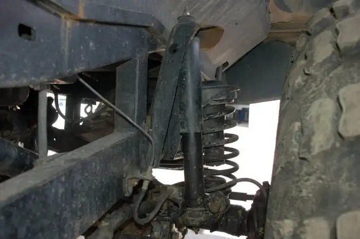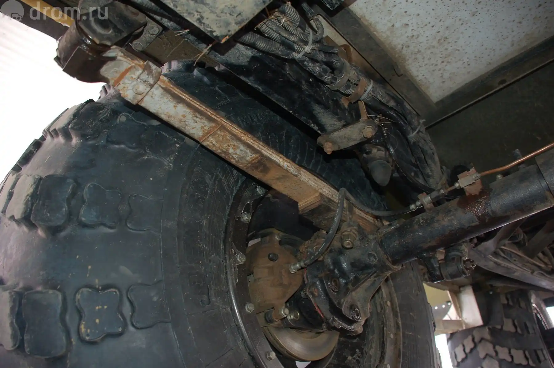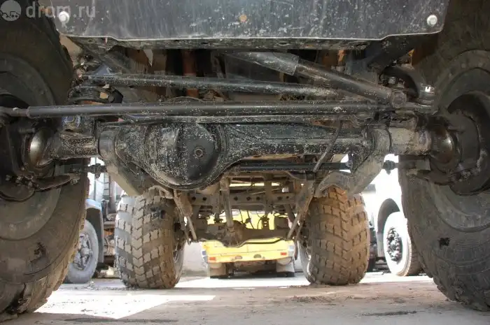 Подвески переднего и заднего мостов слегка «подлифтованы» — вставками между пакетом рессор и балкой. Тормоза — дисковые — также установлены на первой и второй осях. Хватает