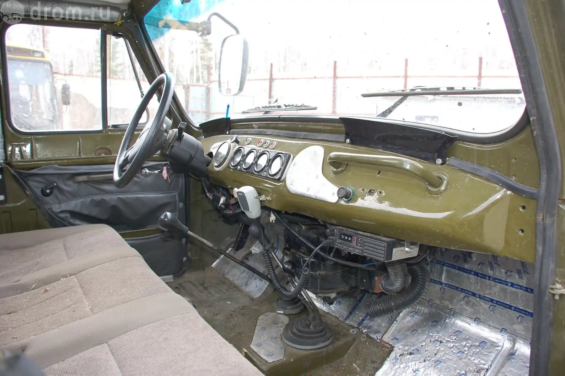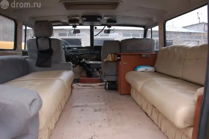 Внутри просторно, комфортно. Взгляд с передних сидений вызывает диссонанс восприятия. С одной стороны, видишь уазовскую железную панель, хотя и расширенную на 600 мм, с другой — посадка как в грузовике или даже выше