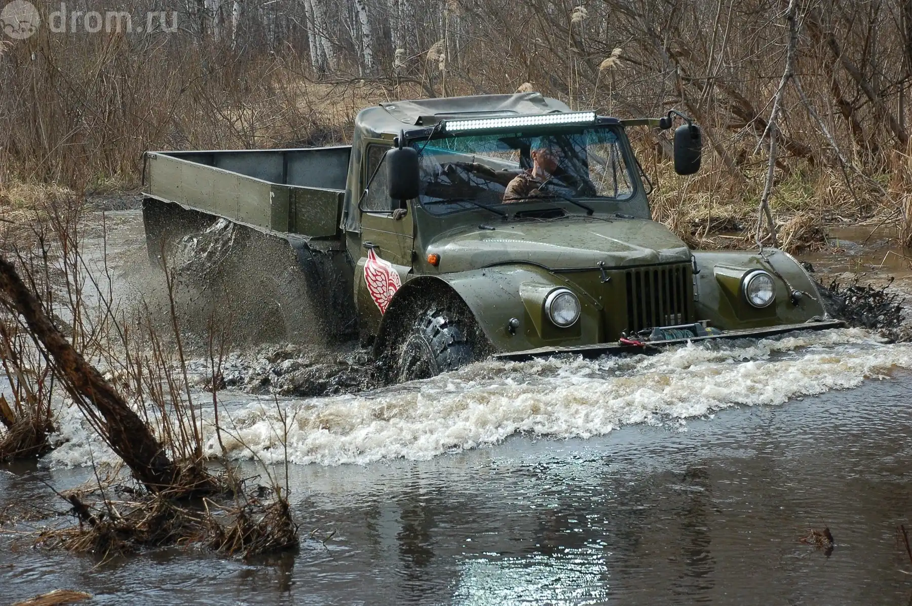 В воде — в своей естественной среде! Только из кабины такой заплыв в сравнении с высоченным «двухосником» выглядит пострашнее. Понимаешь, что если застрянет, придется не выходить — выплывать