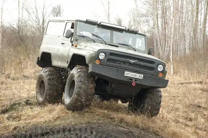 Это было несколько лет назад. Понимая, что никакой, пусть даже серьезно подготовленный джип на обычных колесах любого диаметра в местных условиях не ездок, обратились в одну московскую профильную компанию. Задача была поставлена простая — двухосный болотоход на пневматиках низкого давления, на базе УАЗа, возможно, плавающий. Притом что ничего экстраординарного в заказе не было, его реализация затянулась на полтора года и несла в себе явные анахронизмы.