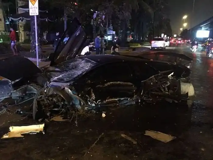 Водитель этого Lamborghini Murcialago LP670-4 SuperVeloce стоимостью около 1 миллиона долларов одолжил его у своего товарища всего на один вечер. Выйдя из ресторана в Бангкоке, Тайланд, он сел в автомобиль с двумя своими друзьями (хоть в Murcialago LP670-4 всего два сидения), чтобы прокатиться с ветерком по ночным улицам города. Не справившись с управлением, автомобиль на большой скорости сбил мотоциклиста, а затем врезался в пальму на обочине. Водитель не получил серьезных травм, а вот двое его друзей и мотоциклист были госпитализированы с серьезными травмами.