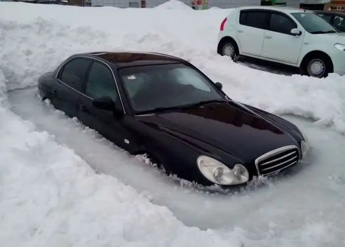 В Уфе во дворе одного из жилых домов стоит вмерзшая в лед иномарка Hyundai Sonata. Лед сковал автомобиль почти по самые окна, и теперь он еще не скоро сможет передвигаться по улицам столицы Башкирии. По рассказу местных жителей, авто долгое время стояло на месте и покрылось снегом, который во время потепления растаял, а после того как вновь ударили морозы Hyundai оказался в ледяном плену.
