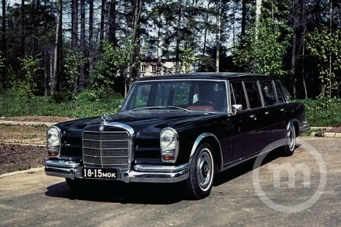 Этот 6-дверный «шестисотый» был подарен «дорогому Леониду Ильичу» в 1969-м канцлером ФРГ Вилли Брандтом. В том же году уникальный лимузин оказался на Дмитровском полигоне, где на благо советской науке был подвергнут полному циклу лабораторно-дорожных испытаний.