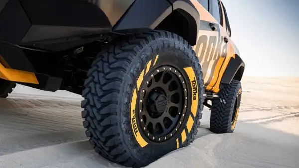 Автомобиль, получивший название HiLux Tonka, был построен на базе топовой версии SR5 с двойной кабиной. Под капотом экстремального пикапа установлен дизельный 2,8-литровый мотор, отдача которого составляет 174 л.с. и 450 Нм крутящего момента.
