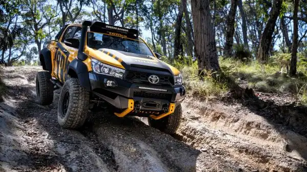 В отличии от стандартного Hilux экстремальная версия пикапа получила увеличенный до 429 миллиметров дорожный просвет (+ 150 миллиметров), 17-дюймовые диски с большими 35-дюймовыми шинами, новый передний бампер, светодиодную люстру и карбоновое покрытие капота.
