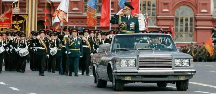 Важный момент: не надо путать нынешний "парадный" ЗИЛ-41041 с лимузином предыдущего поколения (на фото). Такая машина носила индекс 41044 и участвовала в парадах с 1981 и по 2009 гг.