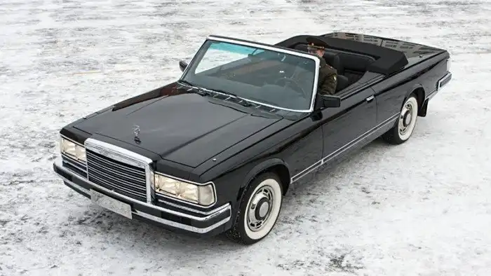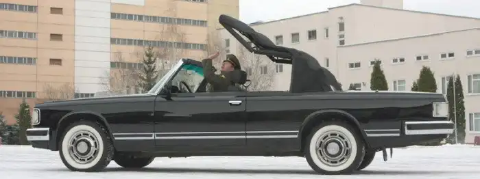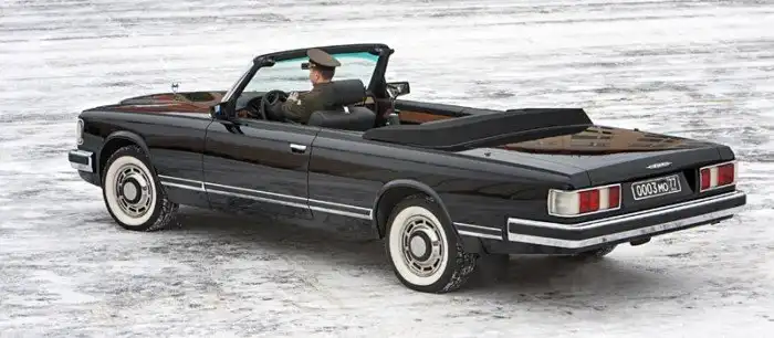 И еще один уникальный кадр: вы никогда не увидите по телевизору кабриолет ЗИЛ-41041 АМГ с поднятым верхом. Не положено! Но при необходимости поднять его оказывается можно. Процесс автоматизирован и занимает около 20 сек.