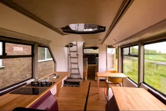 Британец Рик Хант (Rick Hunt) вместе с женой Амандой и двумя детьми отказался от жизни в обычном доме неподалеку от Кембриджа так как не смог оплачивать ипотеку. Решить жилищный вопрос помог двухэтажный автобус, который Рик переоборудовал под семейный дом. Сам автобус был куплен за 3 600 стерлингов (4700 долларов), и еще порядка 15 000 фунтов (19 500 долларов) понадобилось для его доработки. Теперь здесь есть все, что нужно для жизни, включая солнечные панели для электрообеспечения, газовые баллоны для отопления и приготовления пищи, а также лифт для супруги Рика.