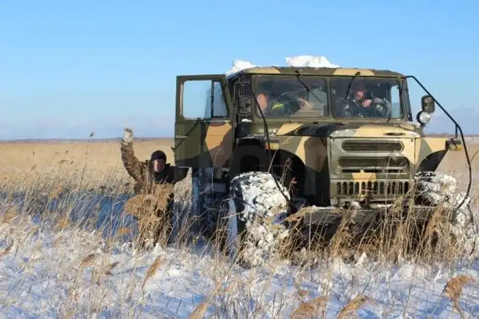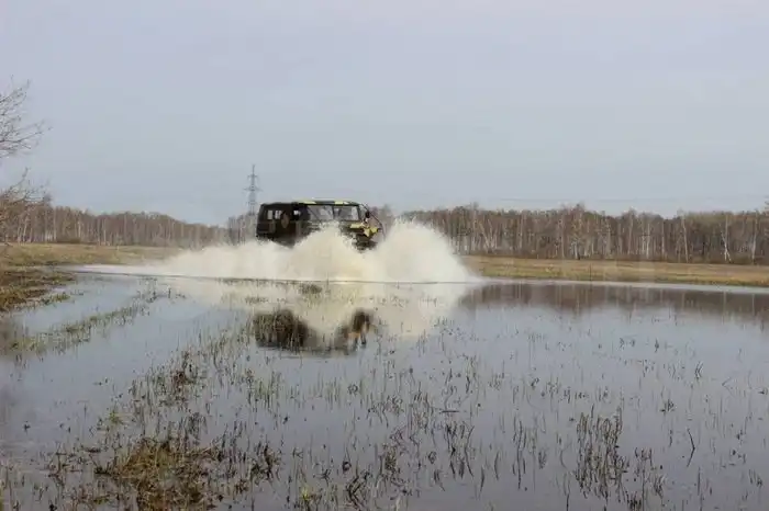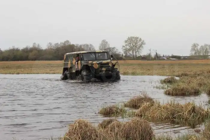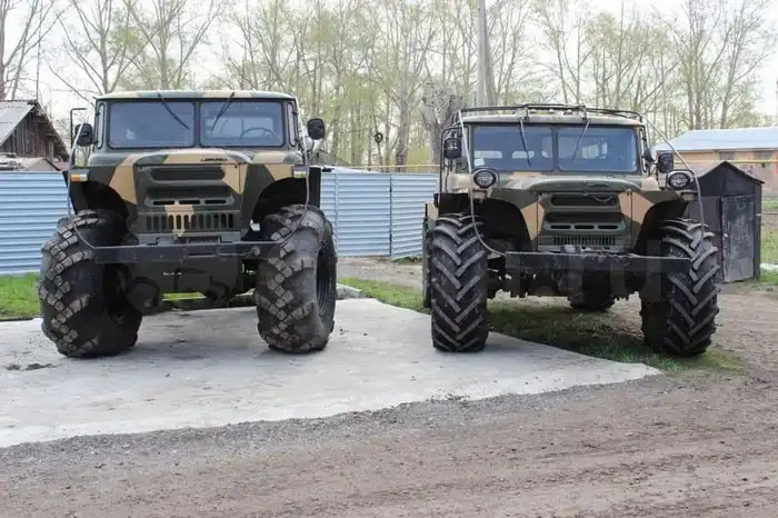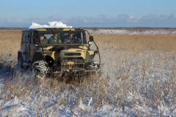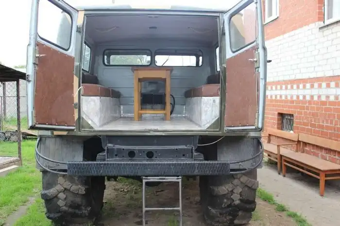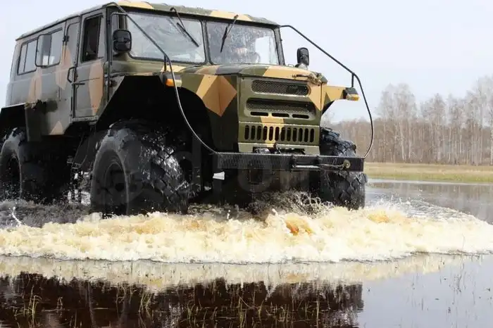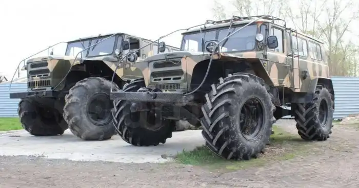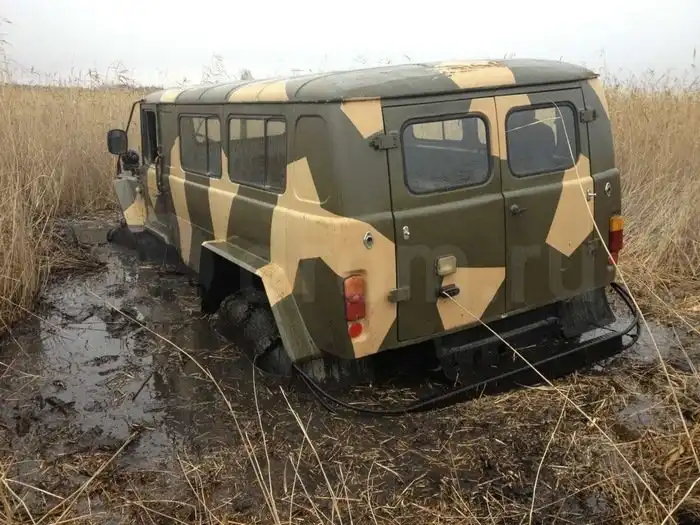 Перед вами кастомный внедорожник повышенной проходимости, построенный на базе грузовика ГАЗ-66. Автомобиль создавался специально для пересеченной местности и труднопроходимых районов, поэтому он может преодолевать не только водоемы и высокие сугробы, но даже болота. Стоит отметить, что это уже четвертый аналогичный вездеход, в котором учтены и устранены все ошибки предшественников. Автомобиль оснащен большими широкими колесами и мощным двигателем, позволяющим ему быстро передвигаться по трассе, выезжать на которые ему разрешают все необходимые документы. Прежде всего, авто создано для любителей выезжать большой компанией на рыбалку или охоту. Стоимость такого вездехода составляет 1,2 миллиона рублей.