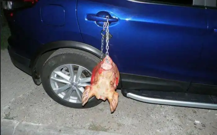 В Чебоксарах водителю, который занял чужое парковочное место, отомстили довольно оригинальным способом. Наверное, автор этой автомести пересмотрел фильмы ужасов и поэтому решил оставить такое странное послание. Аккуратно, некоторым людям данная картина может не понравиться.