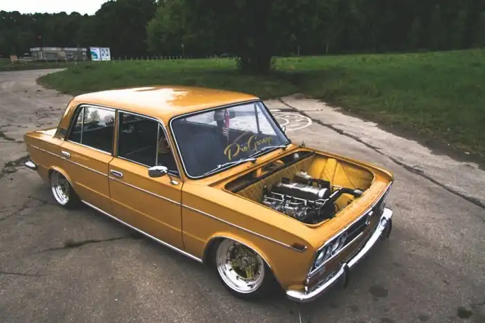 Предлагаем вашему вниманию не совсем обычный автомобиль ВАЗ-2103, а точнее его экспортную версию Lada 1500, которая подверглась тюнингу и доработке. Главной особенностью авто является пневматическая подвеска, которая позволяет регулировать высоту дорожного просвета. Машина также может похвастаться колесными дисками с отрицательным углом развала, эффектной отделкой салона и уникальным оформлением подкапотного пространства, для демонстрации которого капот был снят.